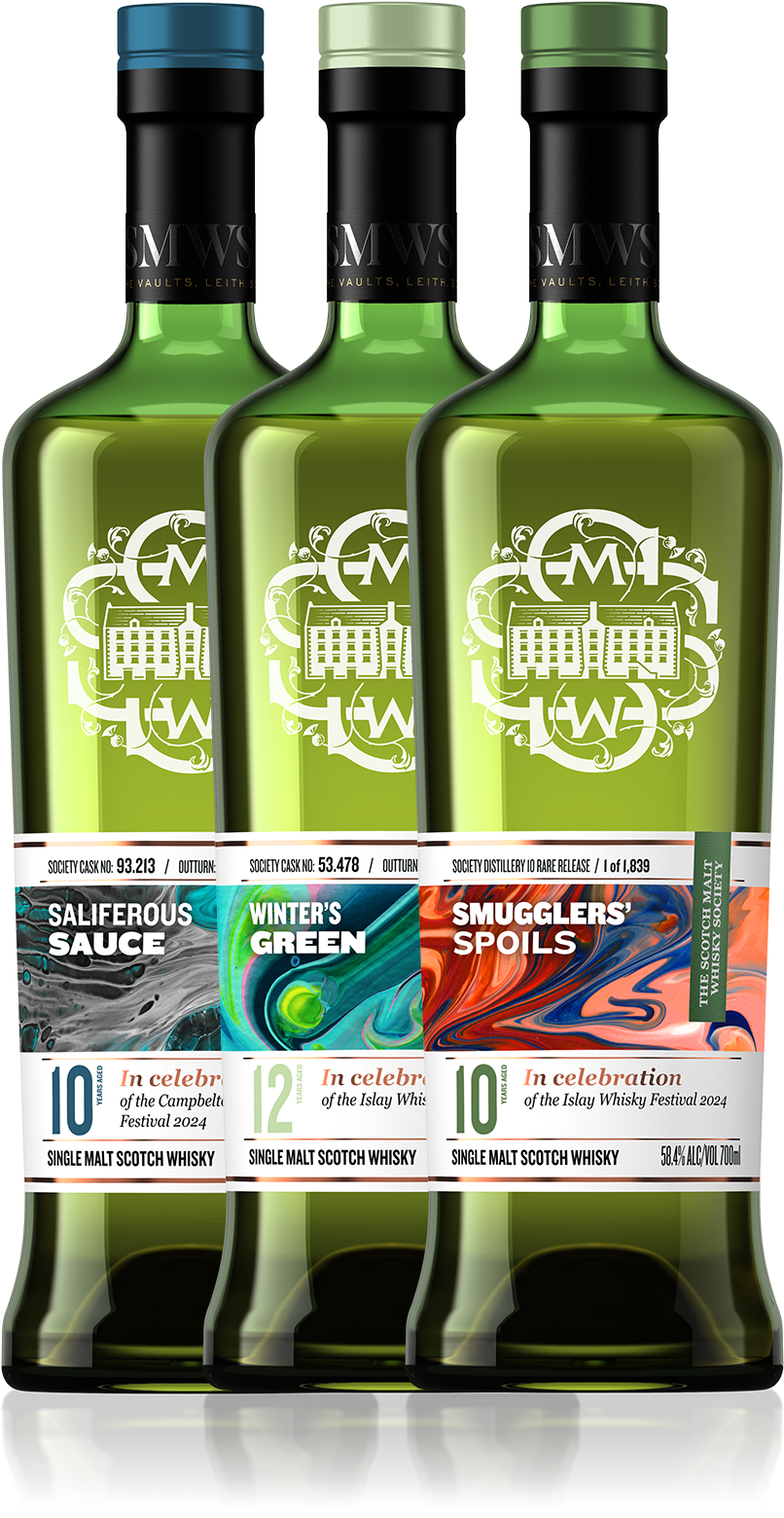 It’s a festival road trip to Campbeltown and Islay! Start at The Campbeltown Malts Festival with Cask No. 93.213 Saliferous Sauce for a single cask expression of marvelous maritime whisky. Head on the ferry to Islay for The Islay Whisky Festival and two stunners from Port Askaig! Cask No. 53.478 Winter's Green starts us off slowly with mesquite smoke and singed thyme before Distillery 10 Rare Release Smugglers' Spoils brings the peat hammer down with copious amounts of smoke and sherry! Take a dive into the west coast waters with this festive trio!