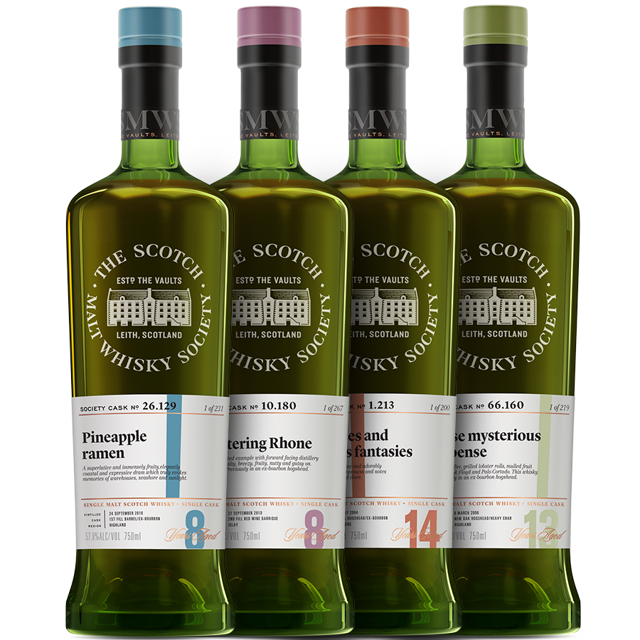 Indulge in a cask strength quartet of Braw Beasties to properly ring in 2020! Our January bundle presents uniquely beautiful bottles that will get the creative juices flowing for a new year of taste adventures. Let’s start with a textured and tasty Highland Northern dram that really shines in younger expressions. Cask 26.129 Pineapple ramen is an elegant and evocative coastal whisky that packs a complex punch – pineapple sorbet, seaweed in miso broth and mango green tea! Coastal, earthen and fruity aromas and flavours all combine for a delightful dance on the palate. Our next malt is a rare bird from Islay. Unpeated with an additional maturation in a red wine cask, Cask 10.180 Westering Rhone is a striking whisky that starts with coastal nuances before turning to red fruits, chocolate and tapenade. This is an utterly unique Islay dram worthy of your attention. We continue with a wine cask now from dessert wine and this one deserves just as much attention - Cask 1.213 Seduces and invites fantasies is a truly decadent malt that saw thirteen years in ex-Bourbon followed by one year in Pedro Ximenez sherry wood. The result is dessert in a glass redolent with all the dark confection and dried fruits one could hope for! We conclude with a lightly peated Highland whisky in Cask 66.160 Tense mysterious suspense. The palate deftly balances a thin veil of smoke with shellfish, red and black fruit and fine sherry characteristics. Entirely complex and inviting, this is a wonderful braw beastie to finish your flight … and start your new year in a wonderful world of flavours!