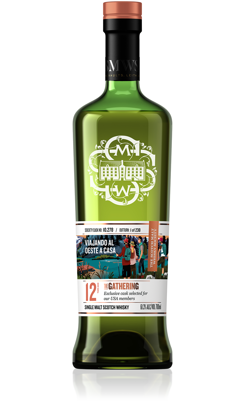 A superbly sherried aroma full of herbal tonic wines, apricots, candied citrus peels, crystallised ginger and aged mead greeted the Panel. A flutter of heather ales and salty earthiness hung in the background. With water it became really expressive, with pecan pie, dark malt loaf, boozy tiramisu, walnut and coffee cake, and salted liquorice. There was a lovely gamey touch underneath all that as well. The palate when neat was laden with dark fruit cordials, aniseed, orange travel sweets, old fashioned cocktails and pipe tobacco. Reduction brought out a lovely flavour of dried exotic fruits, prunes, dates and dark fruit teas with hibiscus flower, leading to a wonderfully salty and drying aftertaste full of salted almonds and Iberico ham. This was matured in a bourbon hogshead for nine years before being transferred to a first fill ex-bodega PX barrique.