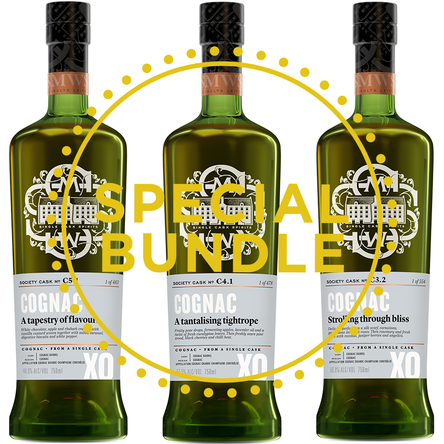 The Grande Master trio hones in on the complexities of Grande Champagne Cognac. This heralded region in Cognac represents the most sought-after vineyards for brandy production. Increased levels of chalky limestone in the soils create an eau-de-vie of superior quality. Cask-specific nuances of these X.O. selections are evident as you nose and taste from glass to glass. A vibrant Cask C4.1 A tantalising tightrope exudes youthfulness through ripeness and intensity. An integrated Cask C5.1 A tapestry of flavors displays time well spent in the barrel with a silken and sexy mouthfeel. Cask C3.2 Strolling through bliss offers the perfect culmination of intensity and integration for a vividly complex dram! Flavours and aromas of stone fruit, flowers, herbs, confection and spice are all framed by subtle oak in these carefully curated casks. Welcome to Single Cask Grande Champagne Cognac!