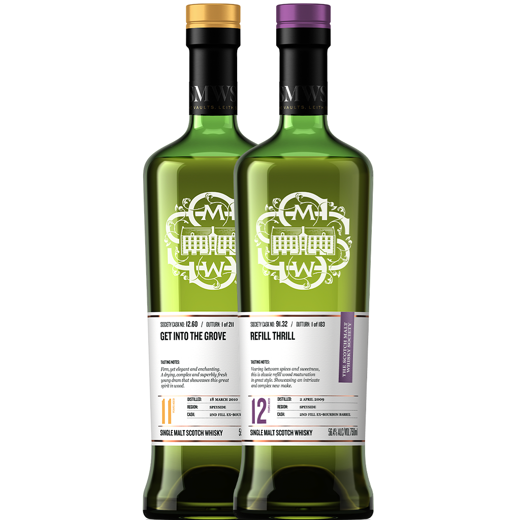 Spice up your collection with our Autumn Spice bundle! These two casks both matured in ex-bourbon barrels offer excellent maturity and wildly different sides of the spice cabinet. Cask No. 12.60 Get into the grove offers a more savoury experience with citrus, floral and mineral components that float along on a richly textured delivery. Cask No. 91.32 Refill thrill delves into robust aromas and flavours of calvados, dessert wines, white pepper and fudge in this exciting expression. A full spectrum of aromas and flavours are in store with this bundle perfect for the season!