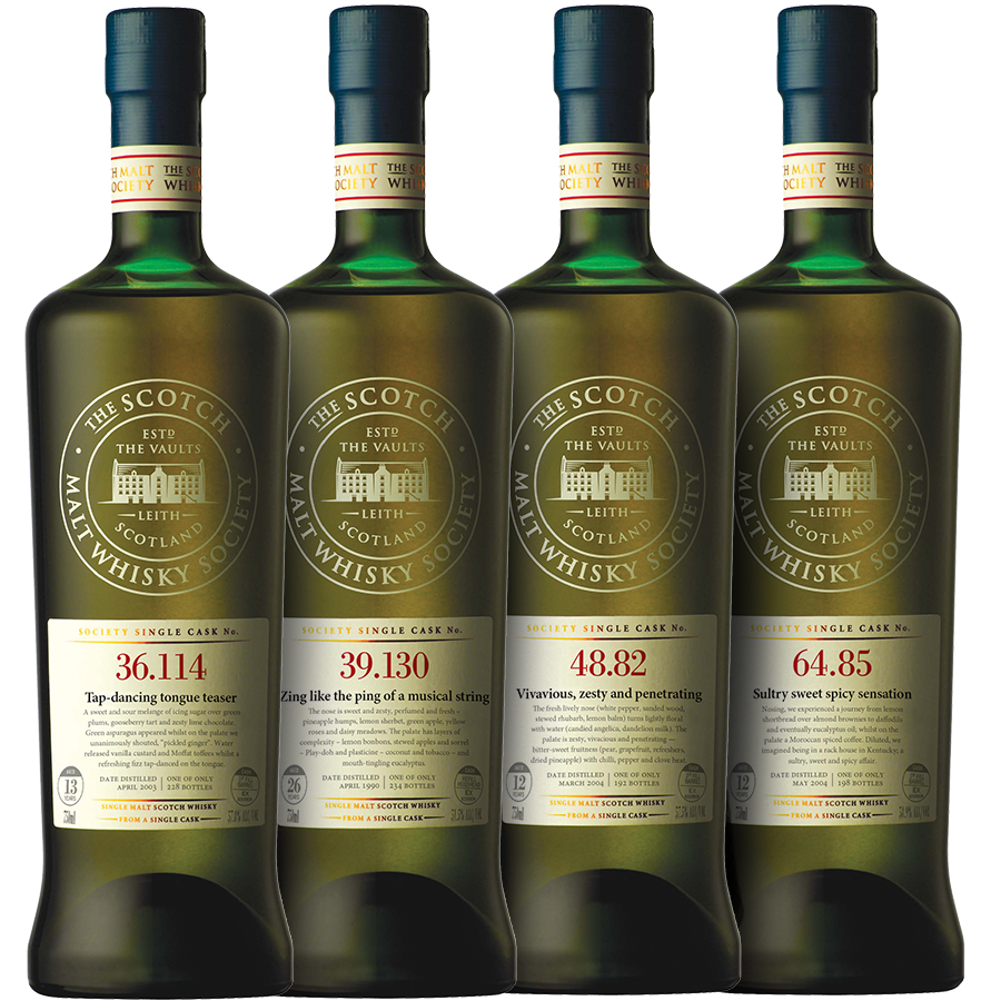 With the release of our new bottle late last year, “old guard” Society bottles have begun to vanish. Down to our last bottles of this classic design, we happily offer The Vintage Collection – a quartet of unique whiskies that speak of a bygone era in the Society. Four different flavour profiles set the stage for a taste adventure through the Speyside that will leave a lasting impression.