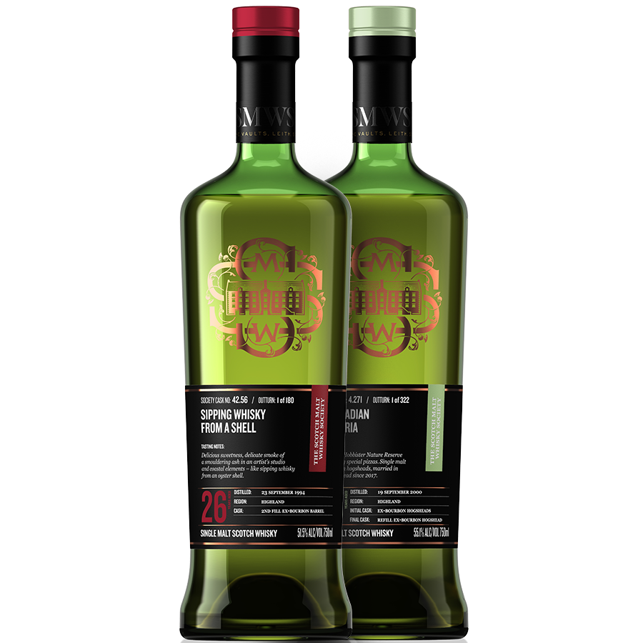 Treasure Islands presents two exquisite black label casks that offer exceptional maturity and complexity from two stunningly beautiful isles of Scotland. Cask No. 42.56 Sipping whisky from a shell is a 26-year-old peated whisky from the Isle of Mull. Whilst the smoke is more nuanced at this age, the coast is calling in this pristine expression. Subtlety of flavours and richness of texture make this a very special dram, indeed. Cask 4.271 An Orcadian peatzeria invites us to experience a 'stunning' malt from the Orkney Islands. 20 years in ex-bourbon cask has created a beautifully perfumed smokiness that exudes the elegance of this member favorite distillery. Embark on this transportive taste adventure as liquid treasure is uncorked, you truly deserve it!